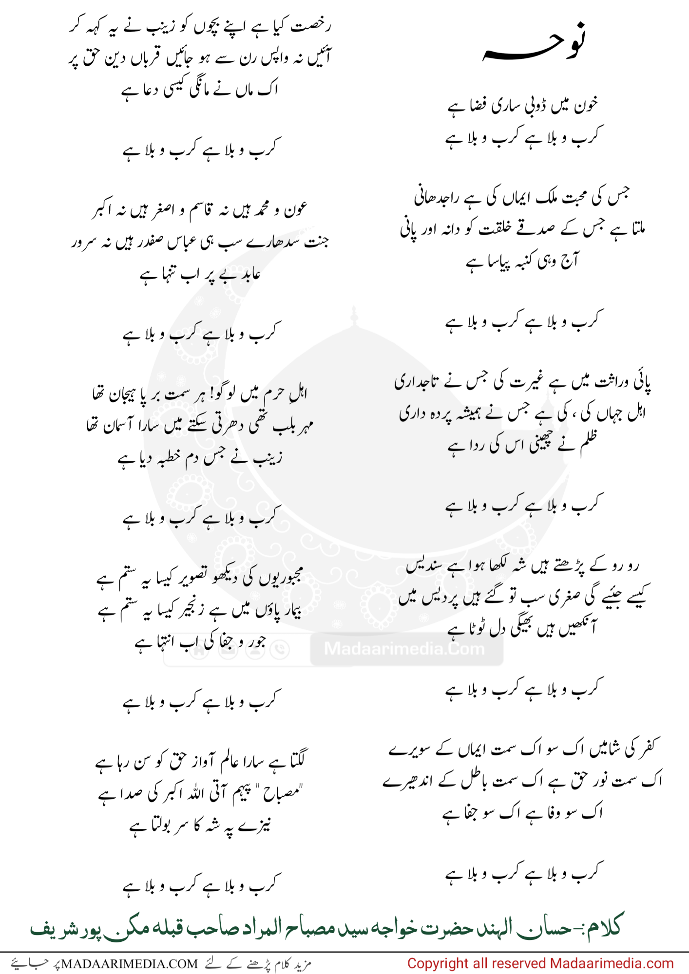 رو رو کے پڑھتے ہیں شہ لکھا ہوا ہے سندیس